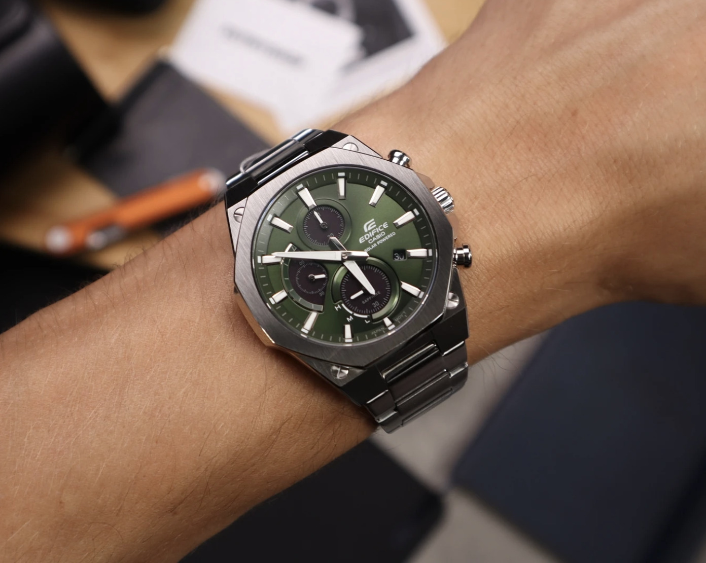 Сонячні панелі на циферблаті заряджають батарею від навколишнього освітлення. Відсутня необхідність заміни батарейки протягом 10 років.